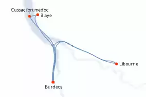 Itinerario : Burdeos, Cussac fort medoc, Blaye, Libourne, Burdeos