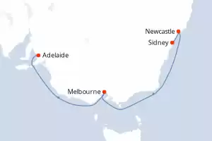 Itinerario : Sidney, Newcastle, Melbourne, Adelaide