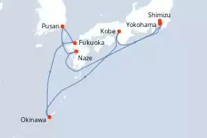 Itinerario : Yokohama, Shimizu, Naze, Pusan, Fukuoka, Okinawa, Kobe, Yokohama