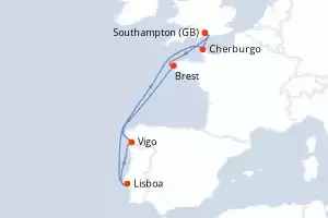 Itinerario : Southampton, Brest, Lisboa, Vigo, Cherburgo, Southampton