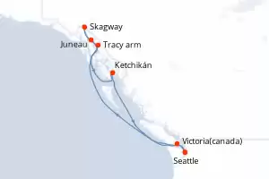 Itinerario : Seattle, Tracy arm, Skagway, Juneau, Ketchikán, Victoria, Seattle