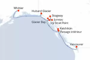 Itinerario : Whittier, Hubard Glacier, Icy Strait Point, Juneau, Skagway, Ketchikán, Passage intérieur, Vancouver