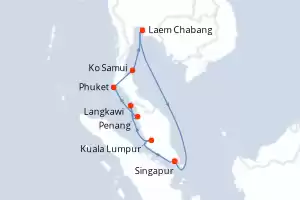 Itinerario : Singapur, Kuala Lumpur, Langkawi, Penang, Phuket, Ko Samui, Laem Chabang, Singapur