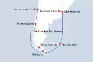 Itinerario : San antonio Chile, Puerto Montt, Puerto Chacabuco, Punta Arenas, Ushuaia, Puerto Argentino, Montevideo, Buenos Aires