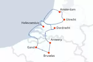 Itinerario : Amsterdam, Utrecht, Hellevoetsluis, Gand, Bruselas, Antwerp, Dordrecht, Amsterdam