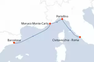 Itinerario : Barcelona, Monaco Monte-Carlo, Portofino, Civitavecchia - Roma, Barcelona, Monaco Monte-Carlo, Portofino, Civitavecchia - Roma